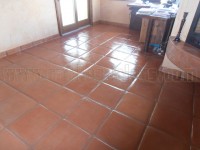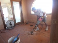 The repair was performed by removing the loose and broken tiles, cleaning the slab of all remaining salt and mortar residue, and re-installing new tiles. Eventually the entire floor was cleaned, diamond polished and sealed.